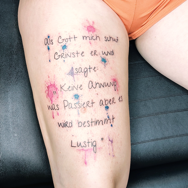 Wenn Du nun noch Fragen hast zu Deinem Wunschtattoo, Termin oder Inspiration brauchst, was Dein Motiv betrifft, würde ich mich sehr über Deine Anfrage freuen.